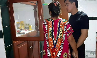 My stepmom gives me a blowjob in the kitchen