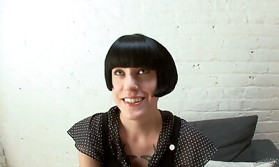 Full of emotions short haired brown-haired emo gal gets bald twat fucked
