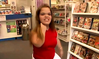 Tall and leggy brunette cutie gets fucked by a midget