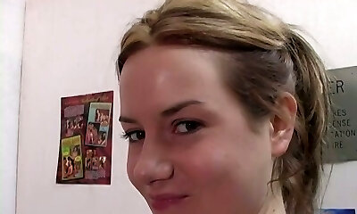 Блондинка обертывания губы вокруг толстый член и сосет его сухим