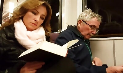 двое мужчин трахают огромные сиськи большегрудой азиатки в общественном автобусе