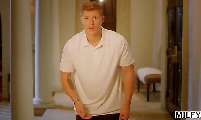 симпатичная пышная блондинка-няня застряла в кухонной раковине и была трахнута своим боссом-дилфом