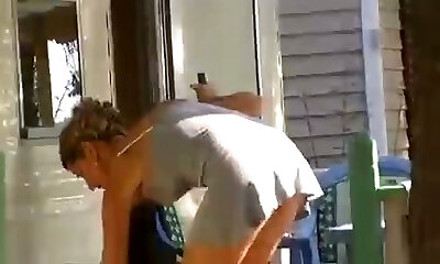 шпионю за своей сексуальной соседкой с большими аппетитными сиськами
