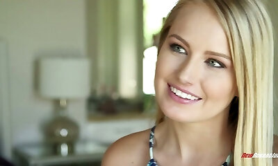Super-cute girlie Scarlett Sage wanna get her fresh pussy poked doggy
