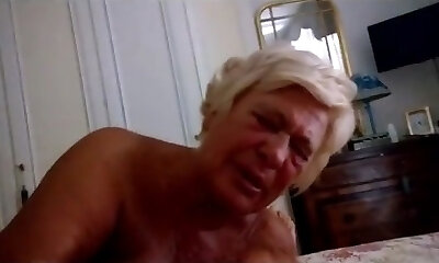 Insane ash-blonde Mary Monroe gets her anus rammed in front of sleeping old daddy