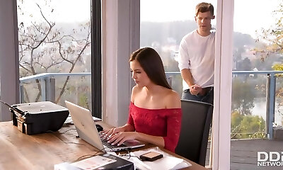 wunderbare raven haired blowlerina winter jade bietet ihr beau mit fellatio in der küche