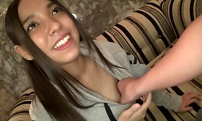 zierliches devotes highschool-mädchen wird von ihrem teenager ohne kondom gefickt