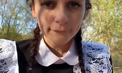 vollbusiges schulmädchen in einem rock reitet bekanntermaßen einen schwanz in der ersten person