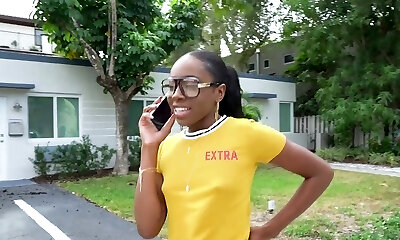 Petite nerdy teen Ava Hardy sucks and fucks doggy style