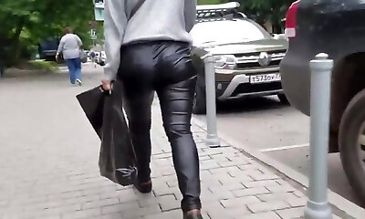 Sweet woman's ass in leather trousers