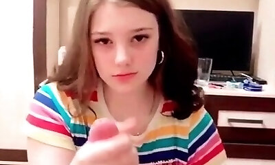 我的新娇小的女朋友向我展示了她的公鸡抚摸技巧