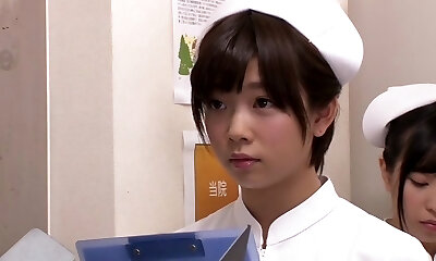 疯狂的日本若虫在超级性感的护士,手工作熟的场景