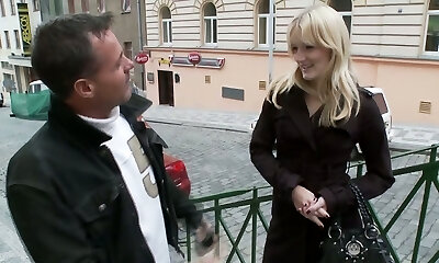 灿烂的捷克光头发美洲狮Denisa天堂被拾起和mouthfucked好