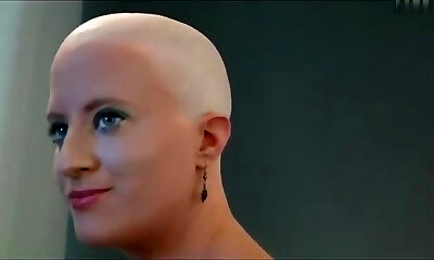 天生的德国女孩闪烁和摆出她史诗般的干净剃光的伤口
